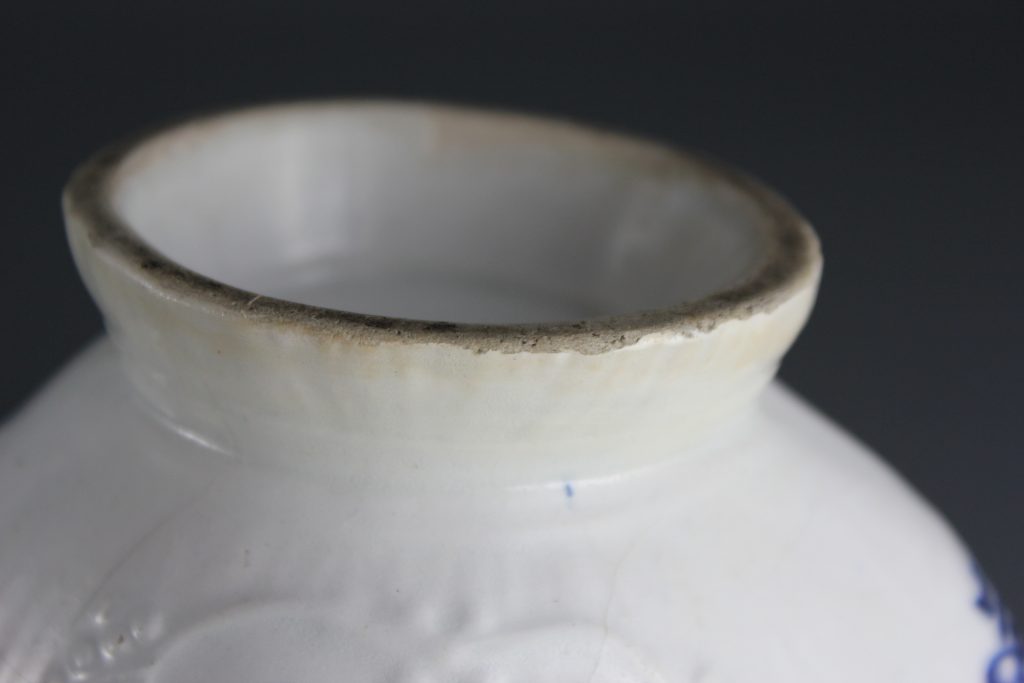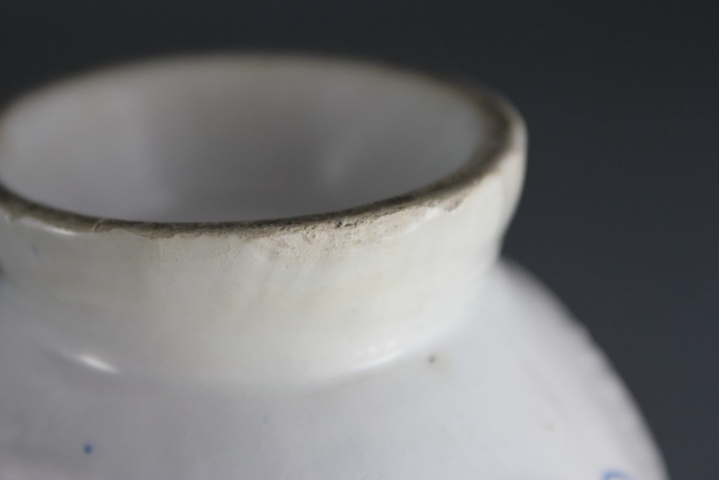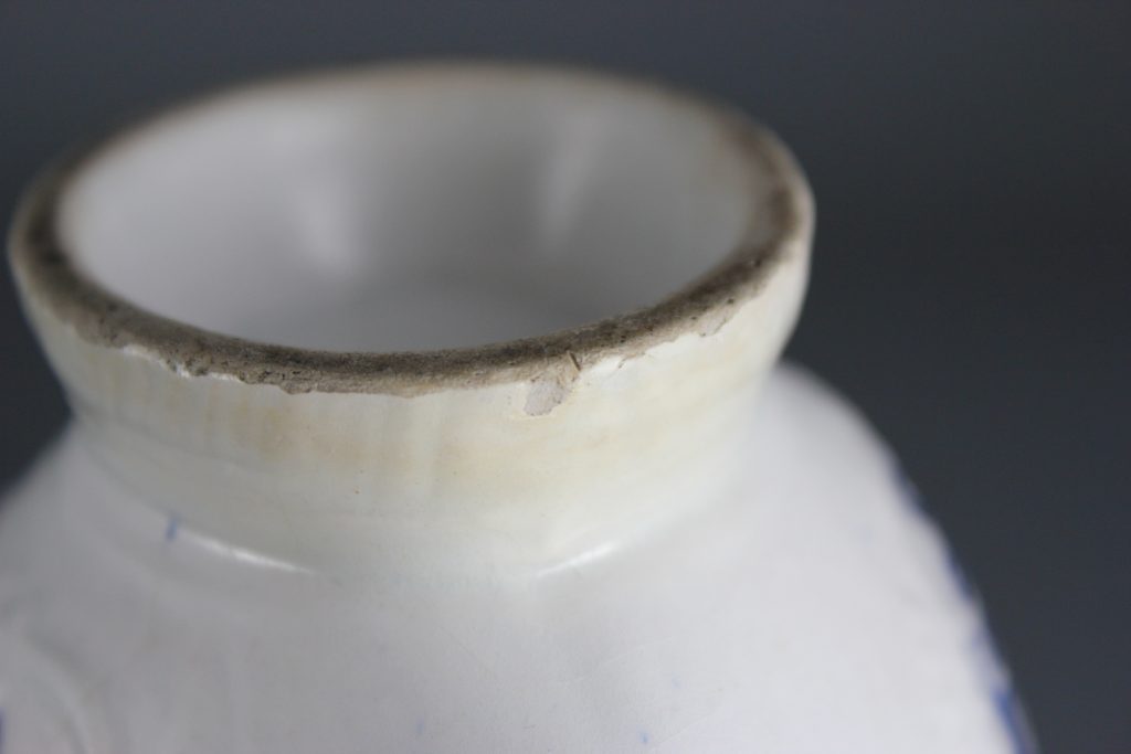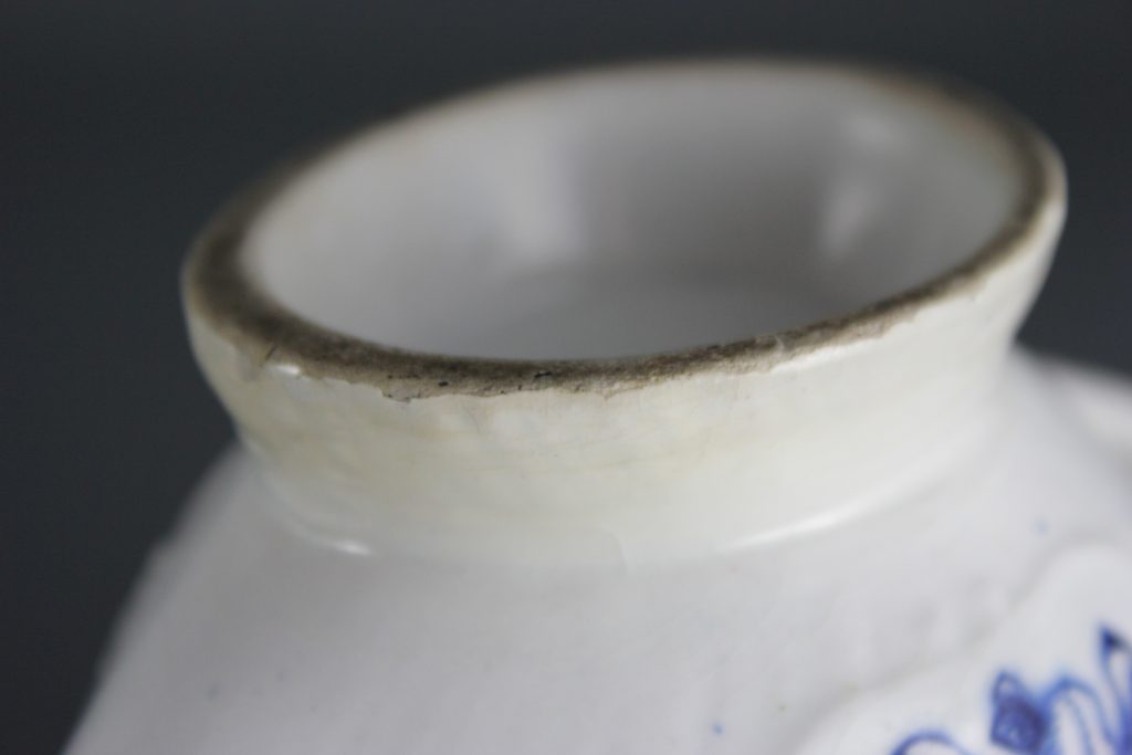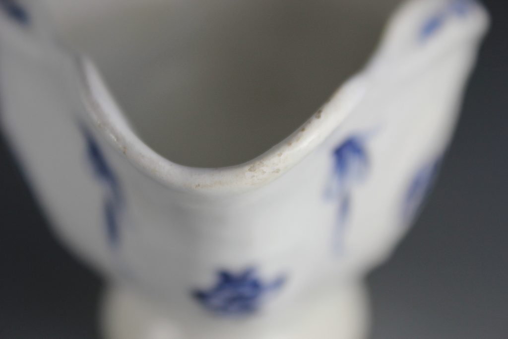 Both the glaze and underglaze cobalt blue pigment of this piece have been tested using X-Ray Fluorescence Spectroscopy (XRF). The results, published in the English Ceramic Circle Transactions, vol. 28, 2017, reveal that the cobalt blue contains nickel. This is significant as 10 out of 10 of all confirmed Isleworth pieces contain nickel, as do all 36 of the possible Isleworth pieces tested. Compare this with the results for Bow, where no nickel is present in the cobalt blue pigment.