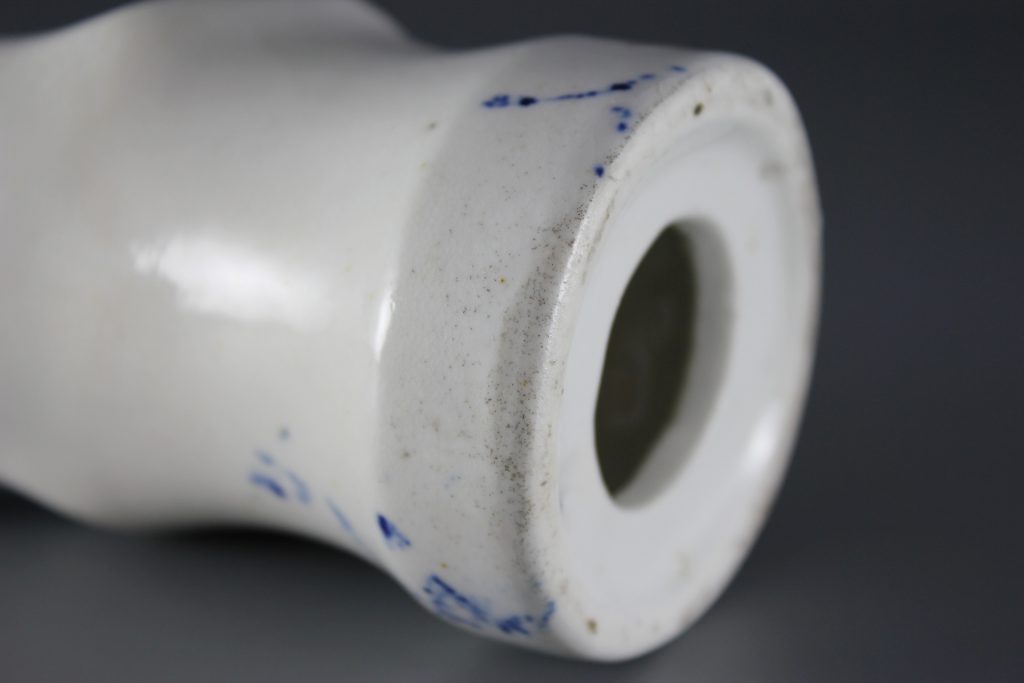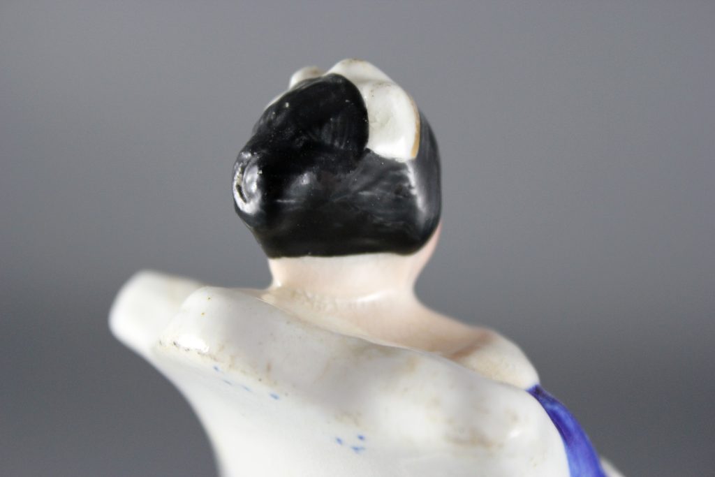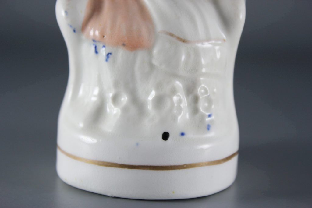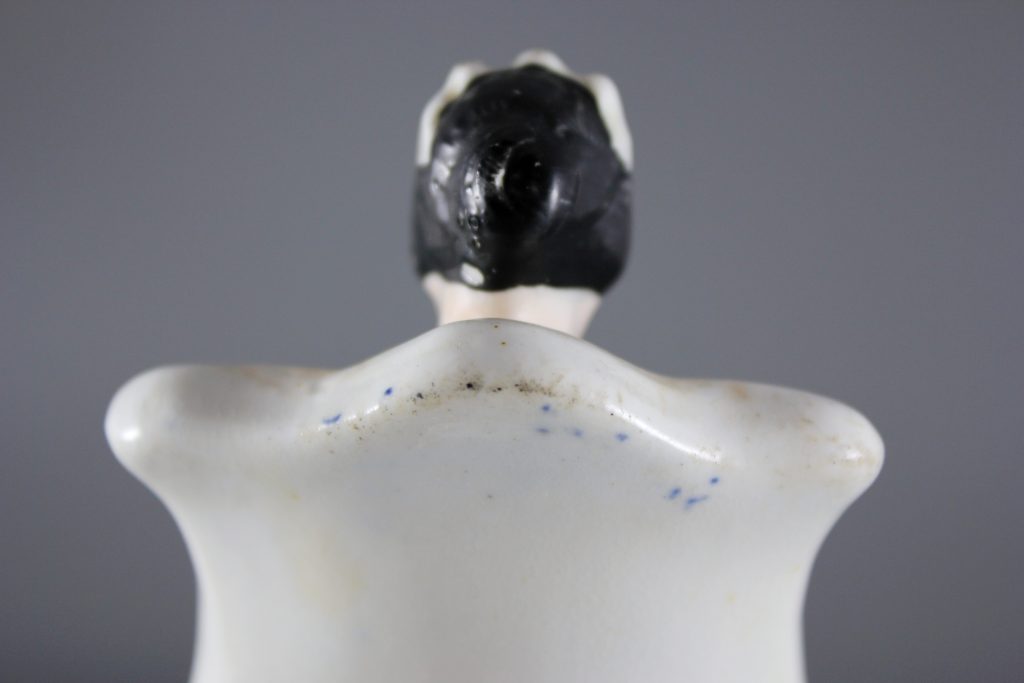 Interestingly, the base of the figure is marked with an incised X. This mark was added when the figure was in its leather-hard clay state, prior to the first biscuit firing.